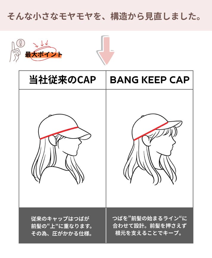 「Makuake(マクアケ)」は、実行者の想いを応援購入によって実現するアタラシイものやサービスのプラットフォームです。このページは、 ファッションカテゴリの 「被っても前髪が崩れにくい帽子【BANG KEEP CAP】もう前髪を諦めない。」プロジェクト詳細ページです。