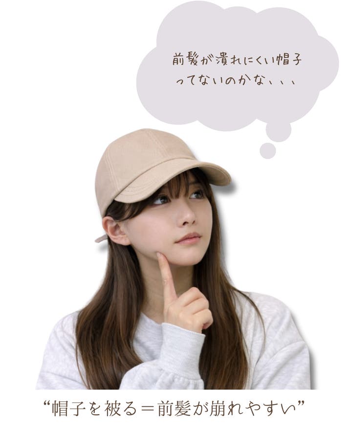- さっと被れて前髪が崩れにくい独自設計で、帽子コーデの日も前髪を気にせず楽しめる!