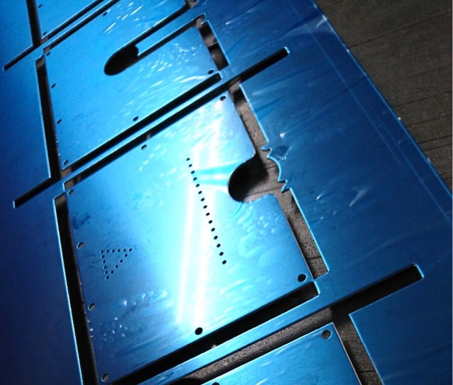 厳選されたアルミ板を1枚1枚精密に抜き穴をあけます。