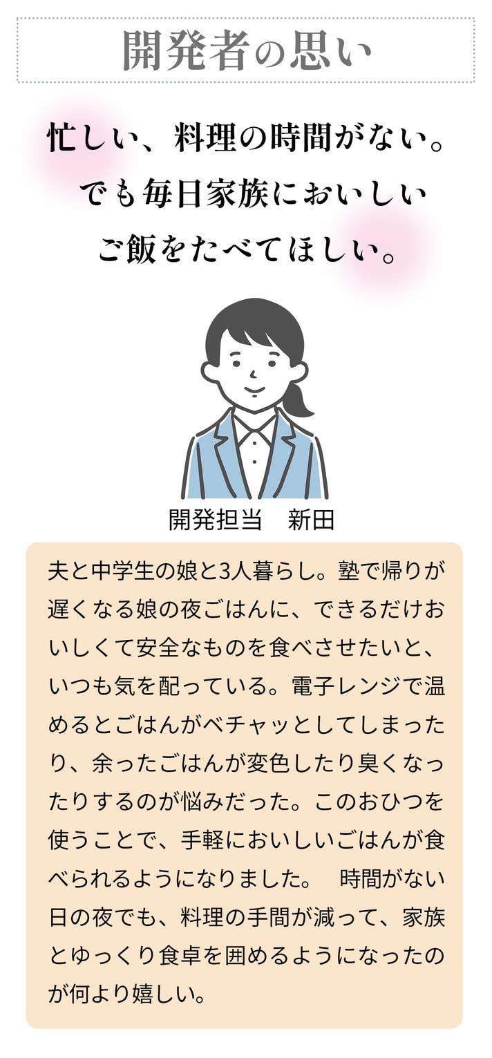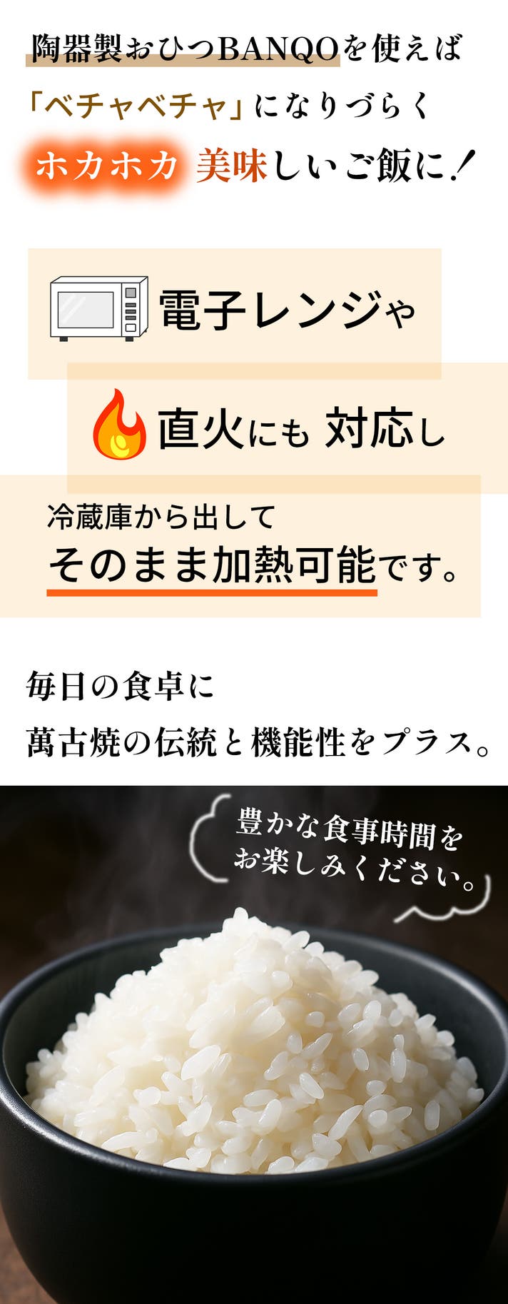 お米の値段が上がる中、少しでもご飯をおいしく召し上がってほしいという思いから、今回の商品【耐熱おひつBANQO】を開発しました。ぜひ日々の食卓を充実させてください。