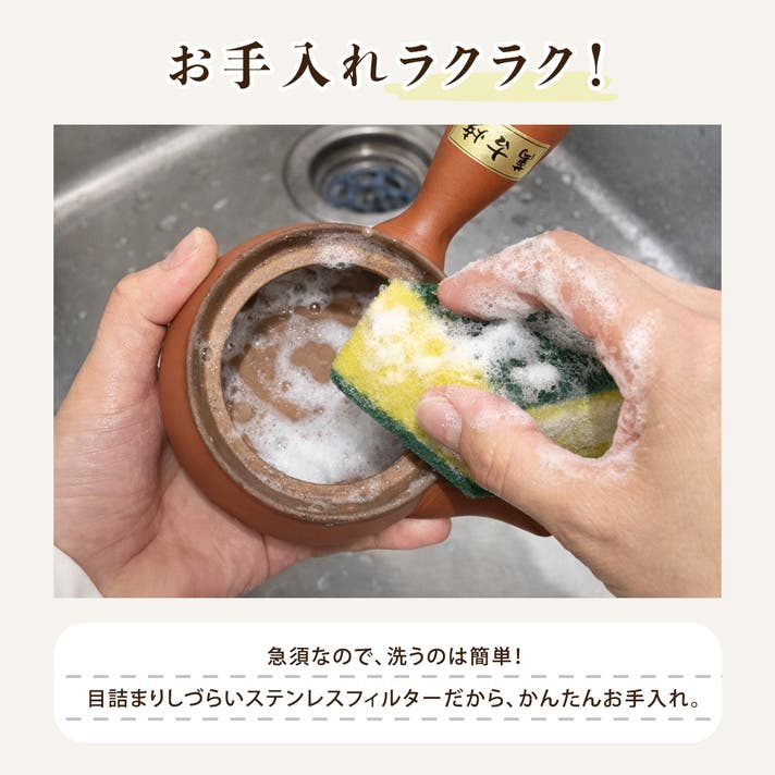 A. フィルターは取り外して洗え、急須本体も簡単に洗浄できます。