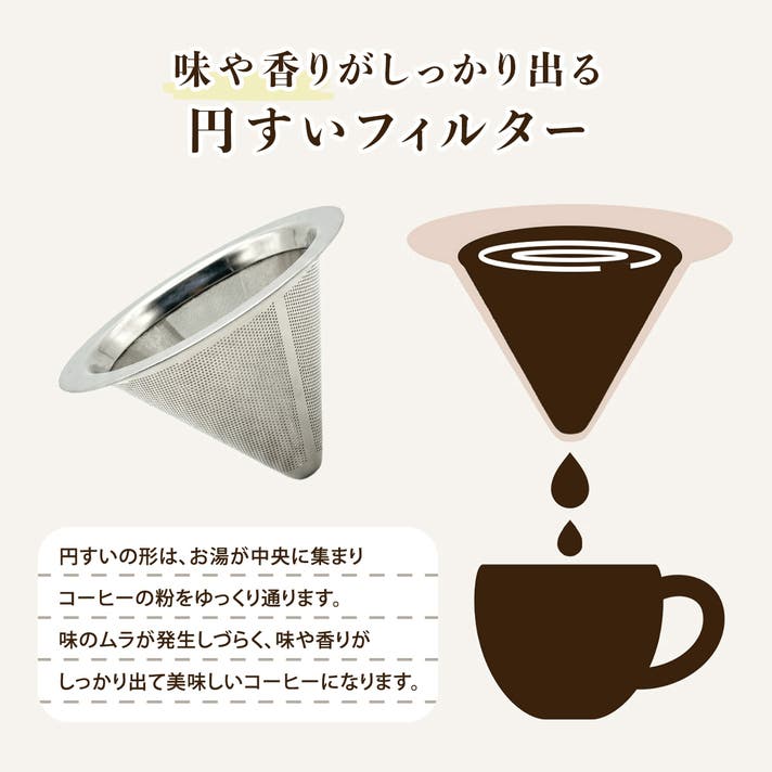 - 【お湯が均等に流れる円すいフィルター】ムラが発生しづらく、バランスの取れた、美味しい味を実現