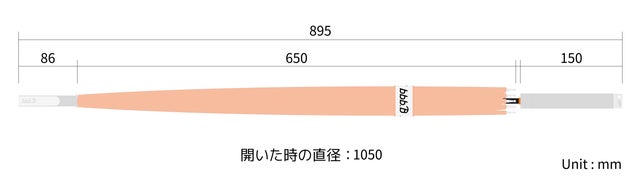 傘を折り畳んだとき傘の長さの合計は85cm、傘を広げた時のサイズは110cm、重さは850gです。