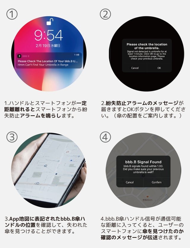 Bluetoothと連動されているロケーションベースのサービス、 Beaconとの結合によりいつでもどこでも傘の紛失防止を予防だけでなく、簡単に見つけることができるように助けてくれます。