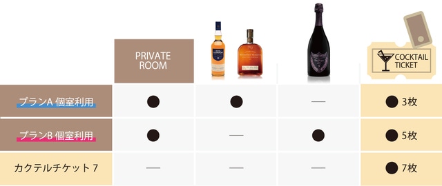 プランA 個室利用 + ウィスキー + カクテルチケット3