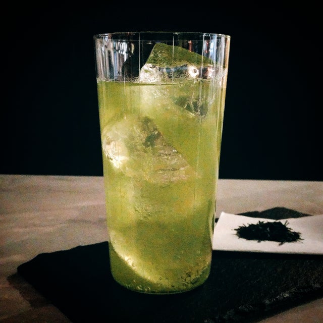 もうひとつのシグニチャーカクテルは煎茶のジントニックです。当店は理想の味を実現するに辺り、華やかな香りを引き出すために複数のジンと茶葉をブレンドしたものと、爽快感を引き出すために複数のジンと茶葉をブレンドした2種類のオリジナルジンを使用して作ります。味わいを追求するため、手間暇をかけて作る和食の精神をカクテルの世界でも表現して、伝えて行きたいという思いを凝縮させた一杯となっております。