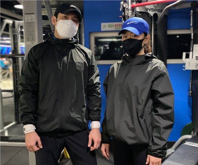 バーニングスーツは高い密封性でウェア内側の熱を逃しにくく、着て運動すれば滝汗が期待できます!