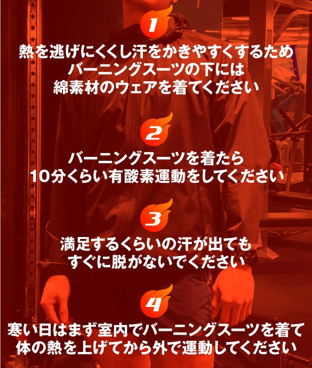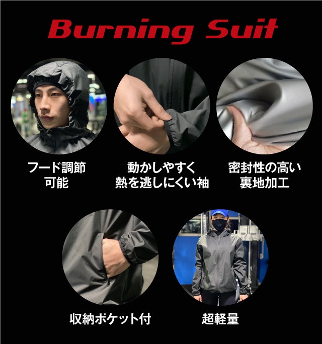 バーニングスーツは着て運動するだけで効率的に発汗し、トレーニングやダイエットのサポートをします!