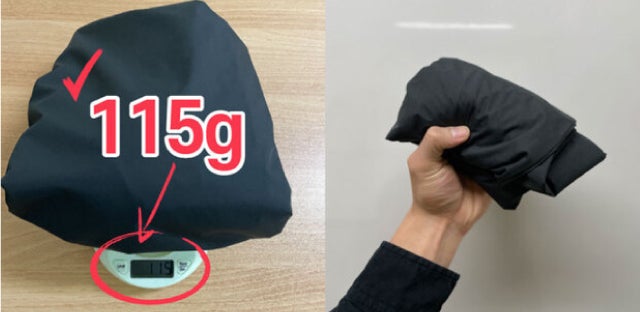 - たったの115グラムで持ち運び楽々、冬でも身軽に運動できる
