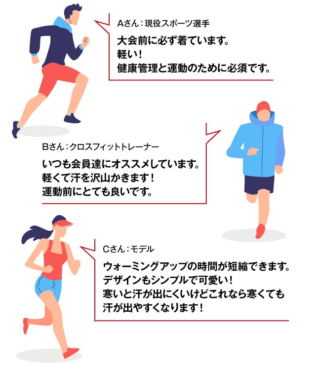 バーニングスーツを着て運動すると、ウォーミングアップの時間を短縮することができ、寒い冬でも身軽にランニングやトレーニングができます。
