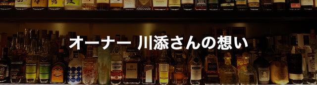 おひとりでご来店いただき、一枚板のカウンターと、カウンターバックに置いてある豊富なお酒を目にしながらゆっくりとご自分の時間を楽しんでいただくもよし、隣どおしとなったお客さまと交流していただくもよし、奥にあるソファー席で気の置けない仲間達とお過ごしいただくもよし、お気に入りの隠れ家ホテルを訪れたように、思い思いの夜更けを楽しんでもらいたいと願っております。