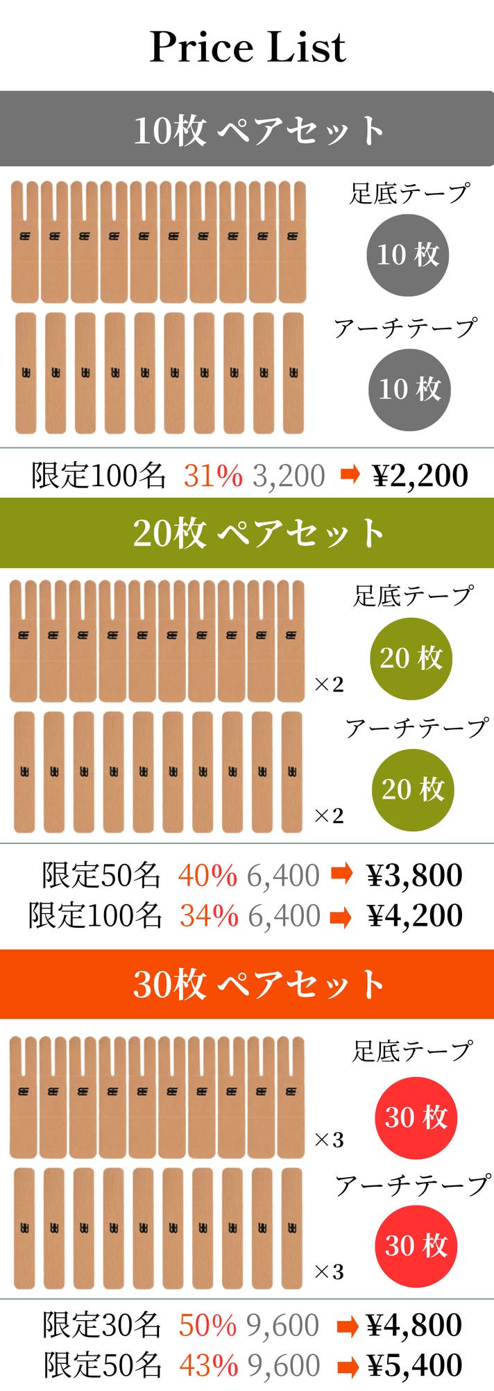 ■製品構成:足底テープ30枚+アーチテープ30枚