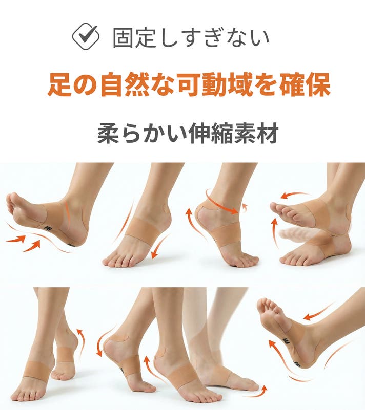 足裏のバランス: 完全に固定せず適切な可動域を自然に保ちながらサポート。