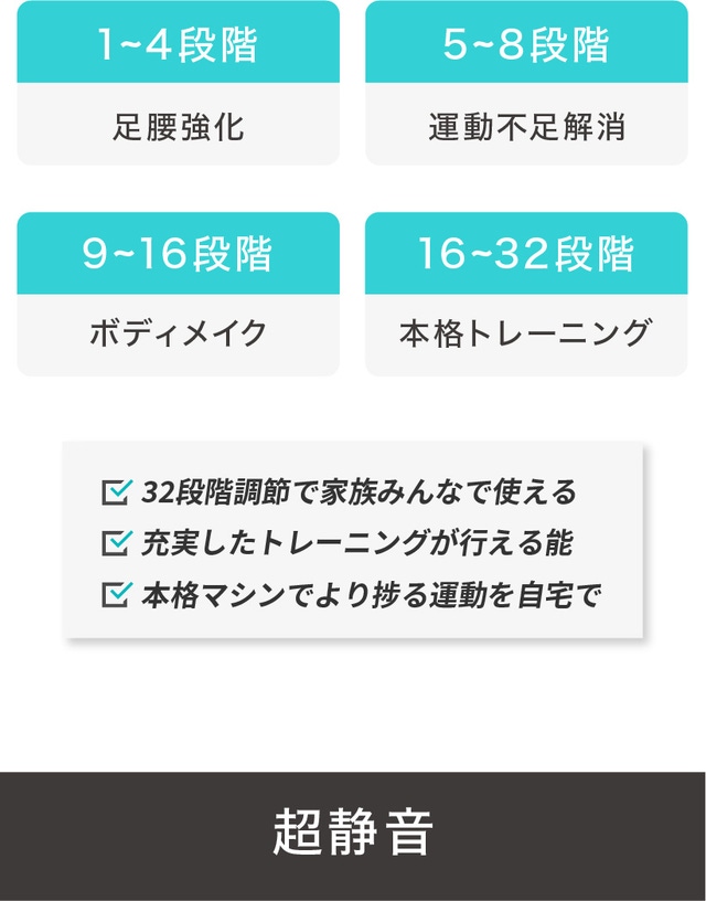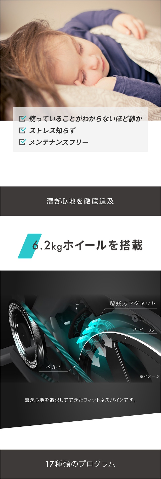 まるでそよ風のように超静音だから、夜間のトレーニングや賃貸でも安心。