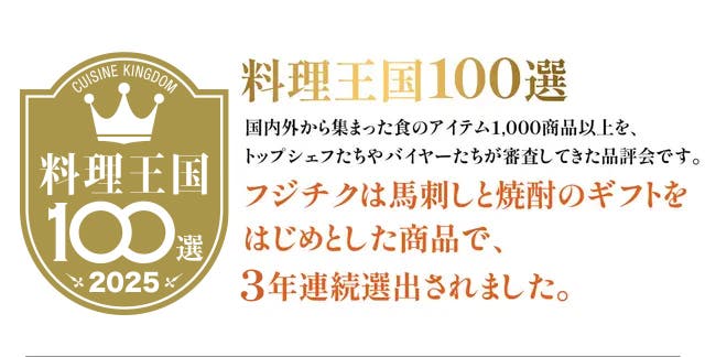 - フジチクの馬刺しはトップシェフや一流の食品バイヤーなどが審査を務める品評会で、数多くの賞を受賞