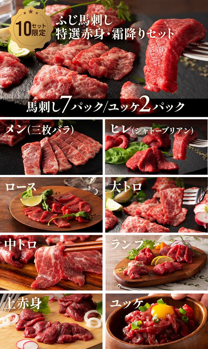 馬刺し:カナダ産熊本肥育、フランス産熊本肥育、国産のいずれか