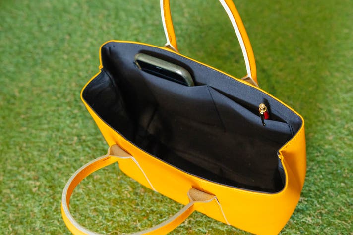 シンプルさを追及して、バッグの外側にはポケットをつけていません。そのかわりに、バッグ内側にポケットを2つ つけました。スマホやペンなど使用頻度が高く埋もれてしまいがちなアイテムも、ここに入れればスッと取り出せて便利です。