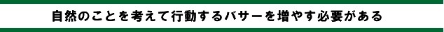 自然環境のことを真剣に考え、行動できるバサーを増やしていく必要があります。釣り場環境を危惧するバサーは自分達にできることとして『ゴミ拾い』をしています。いま一人一人がやっている貴重な活動を全体の力に変えてカタチにしていきたいと思います。