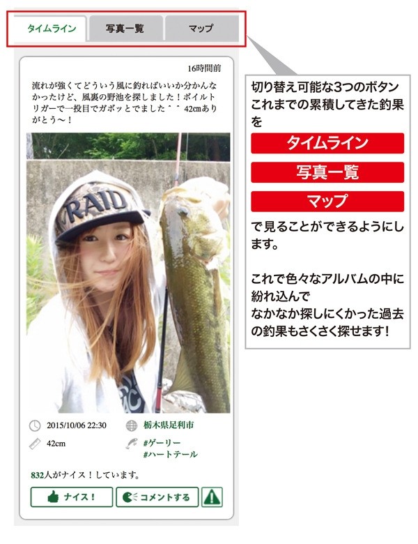全国のバサーはFacebookやLINEでグループをつくり日々釣果の報告をしあい交流しています。しかし、それらSNSではバス釣り以外の情報も多く、本当にシェアしたい人同士のシェアがしづらく、投稿した情報はタイムライン上に流れては消えていくフロー型なので、後から必要な情報を探しだすことが非常に困難です。