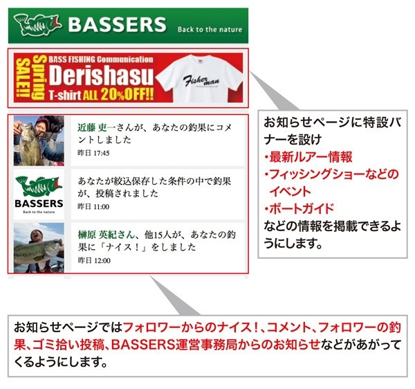 【BASSERS】サイト上の「お知らせ」の最上部を固定の広告枠にてご提供します。5枠限定ですので、表示率は25%となります。