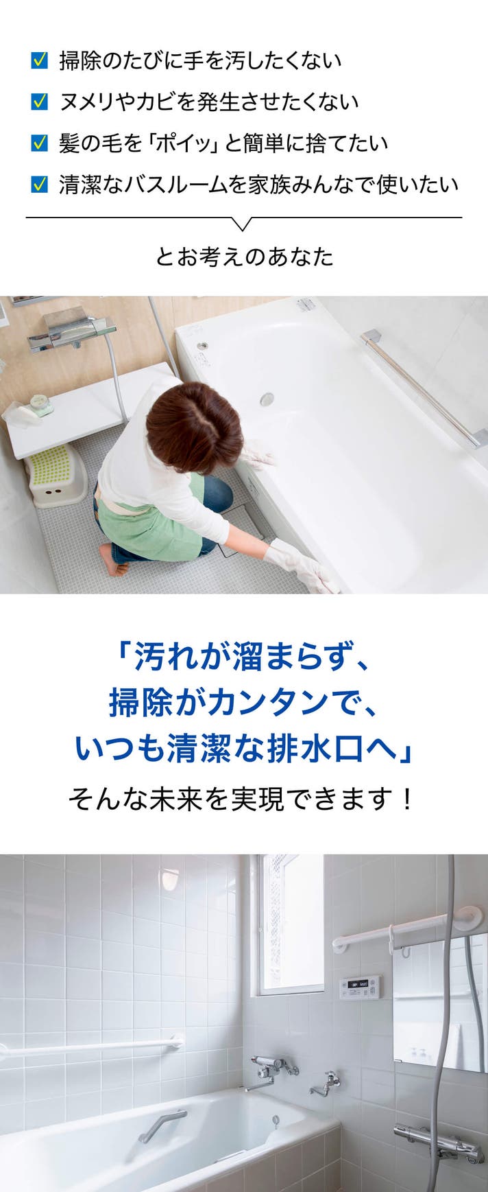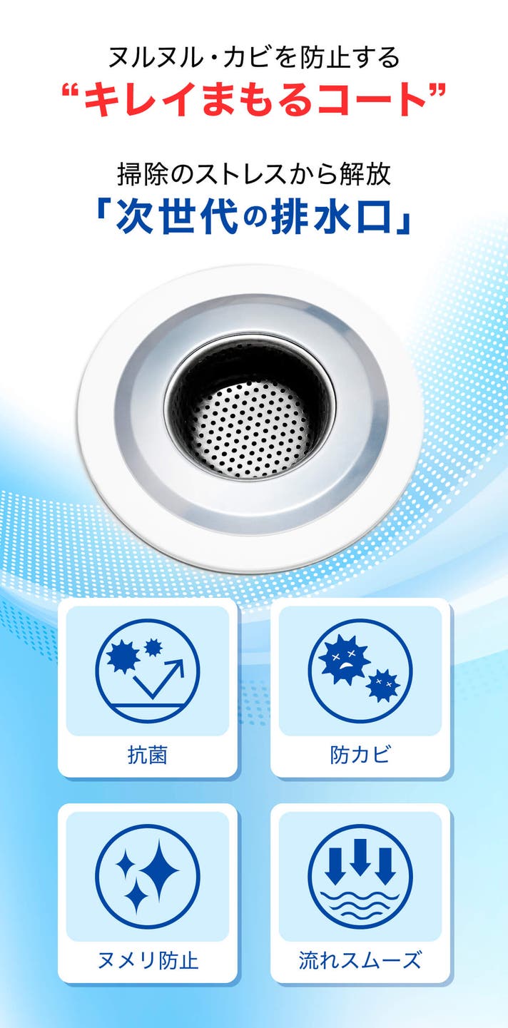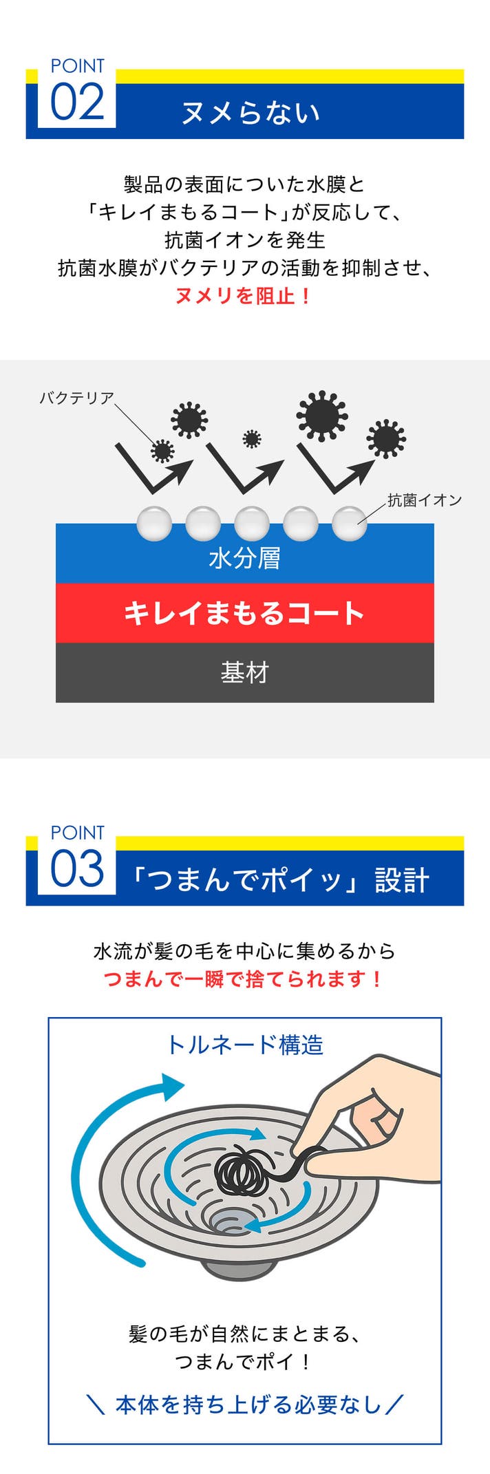 - 長く続く清潔さ → ”キレイまもるコート”が「ヌメリ」や「カビ」を抑え、清潔を長期間キープ