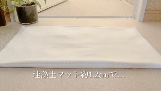 軽いのでマグネットクリップなどで洗濯機につけておいたり、やわらかいため折りたたんでの保管も可能。板状の珪藻土バスマットのように立てかけておく必要もないので、倒れて割れる心配もありません。