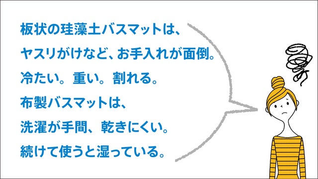 2017年。硬い板状ではなく珪藻土粉体をそのまま使用した「柔らか珪藻土」バスマットをMakuake 応援購入のサポートいただき、開発製品化しました。これまでのサポート 本当に有難うございます。