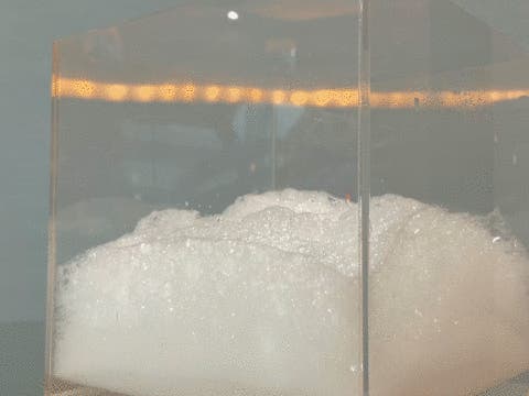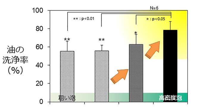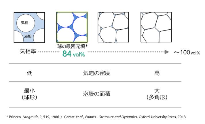 バスシェイカーで作られた泡は気泡の密度が高く、泡密度が高くなればなるほど泡膜面積は大きく皮脂の吸着率は高くなります。