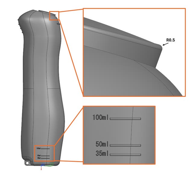 ※ご使用の各シャンプーの界面活性剤により若干の誤差がありますので目盛りはあくまで目安として水容量はお好みに合わせて調節いただきますようお願い致します。