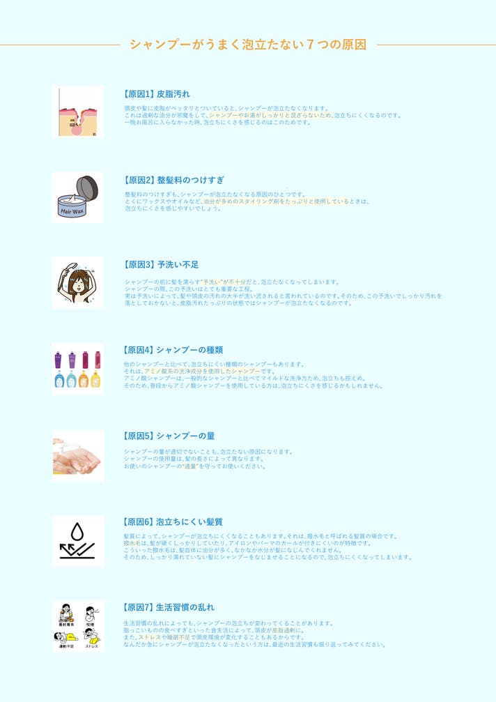男女問わず、その豊富な泡が髪と髪、髪と頭皮の緩衝材(クッション)となり摩擦レス効果で頭皮と髪をケアするのです。