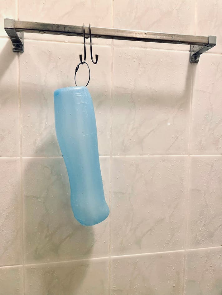 ※お風呂場での様子(底部に穴が開いており、そこに紐などを吊るし引っ掛けます)
