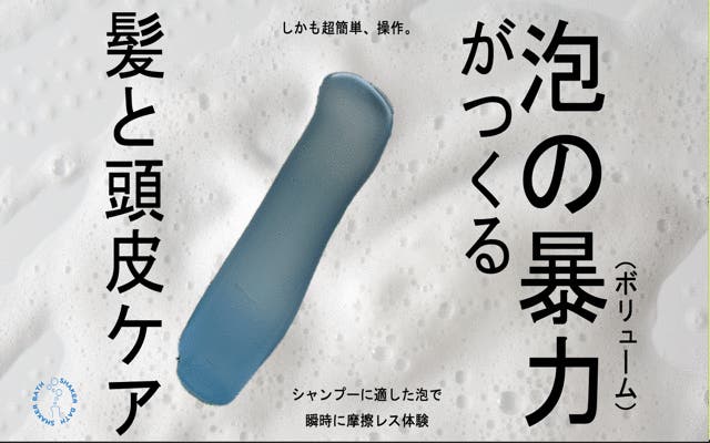 バスシェイカーは普段のように髪や頭皮にシャンプー剤を擦りつけながらて泡立てるのではなく、はじめから泡の状態でシャンプーをする”はじめから泡をかける”という新発想のアイテムです。