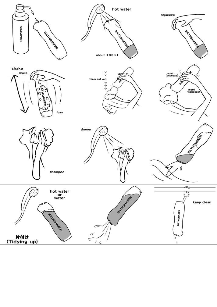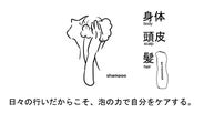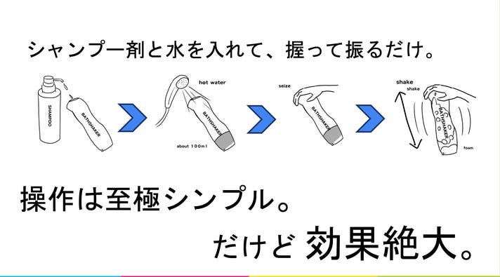 - シャンプー剤をシェイクしてはじめから『泡』で出すという新発想。