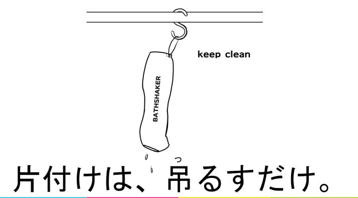 A.本商品は自立させることも可能ですので浴室に吊るす場所がない場合は、逆さに向けよく水を切ってから自立させてください。