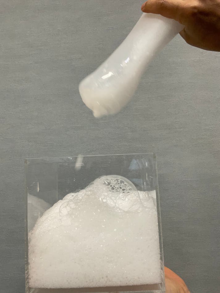 シャンプー剤をシェイクしてから出る「泡のボリューム」にあなたはきっと驚きを隠せないことでしょう・・・。