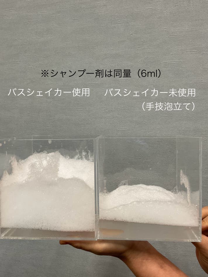 ご覧のようにバスシェイカーを使えば、いつも以上の泡量が確保できます。