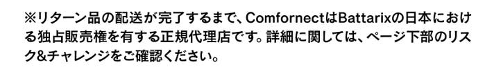 プロジェクトに関する情報 ・プロジェクトの属性:輸入商品 ・代理店によるサポート:製品保証1年間 ・プロジェクト実行者(国):日本 ・製品者(国):アメリカ ・製造者(国):中国 ※並行輸入品が発生する可能性があります。正規以外での個人輸入等は、完全に防ぐことができない場合がございます旨、予めご了承のほどお願いいたします。 ※リターン品の配送が完了するまで、ComfornectはBattarixの日本における独占販売権を有する正規代理店です。並行輸入品が発生する可能性がございますが、並行輸入品には正規代理店による製品サポートを受けることができません。 また、正規代理店を通じて購入することで、日本国内での流通に必要な各種認証の取得や、関税の適切な処理が担保されます。 ※一部国内に類似商品が出回っている場合がございます。弊社では他社の類似品に関してのお問い合わせには対応できませんのでご了承ください。 ※使用感などに関しては、感じ方に個人差が予想される製品でございます。そのため、使用感等に関する返品・返金はお受けいたしかねます。 ※初期不良以外に関する返品・返金はお受けいたしかねます。 ※デザイン・カラー・素材などの仕様が一部変更になる可能性がございます。 ※モニター環境によって、画像の色が実物と異なって見える場合がございます。 ※応援購入の数が想定を上回った場合、製造工程上の都合等により出荷時期が遅れる場合がございます。 ※皆様から想定を上回る応援購入を頂き、量産体制を更に充実させることができた場合、一般販売価格が予定価格を下回る可能性がございます。 ※本プロジェクトはアンコールプロジェクト(*)の実施可能性があります。 (*)アンコールプロジェクトとは、実施したプロジェクトが好評だった場合において、当該プロジェクトが終了後に再び数週間から数ヶ月程度実施するプロジェクトを言います。 アンコールプロジェクト実施の場合、本プロジェクトとアンコールプロジェクトで同じ配送月を設定する可能性もございますが、本プロジェクトのサポーターを優先して配送いたします。 ※本文中に記載させていただいたスケジュールは、あくまでプロジェクト公開時点の予定です。応援購入の性質上、配送遅延のおそれがございます。原則として、配送遅延に伴う応援購入のキャンセルはできませんが、リターン配送予定月から3ヵ月を超えた場合には、希望者に限りキャンセルにて対応させていただきます。 【商品等の不具合による返品・交換】 原則として、サポーター都合によるキャンセル・返金は承っておりません。 (サポーター都合のキャンセル不可の例:サイズが合わない、誤注文、長期不在) ◾️対応条件: 商品の初期不良、またはお届けした商品がご注文内容と異なる場合、到着後14日以内にプロジェクトページの「実行者にメッセージ」よりご連絡ください。状況を確認の上、返金対応、または良品との交換対応をさせていただきます。 ◾️返金額: リターン金額(税込)の全額 ◾️返品送料/再送料: 実行者負担 【返品・交換をお受けできない商品】 ・サポーターの責任により破損、汚損が生じた商品 ・商品のタグ、付属品、パッケージ(箱、袋など)を紛失、破棄された商品 ・事前にご連絡をいただいていない商品 ・商品到着後、15日以上経過した商品 【交換をお受けできないケース】 ・限定品や同一商品の在庫がない場合など、代替品をご用意できない商品 以上の注意点につきましてあらかじめご理解とご了承いただいた上で応援購入くださいますよう、よろしくお願い申し上げます。 最後に、本製品を手に取った皆様に喜んでもらえるよう、チームメンバー一同心を込めて対応していきますので、 応援よろしくお願い致します。 <ご使用にあたっての重要事項> ■製造時期について 本プロジェクトでお届けする製品は、2024年4月製造ロットです。 本製品は、製造後に満充電された状態で封入され、 長期保存を前提とした設計(最大8年保存目安)の非常用バッテリーです。 製造から一定期間を経ることで内部状態が安定し、 非常時にも安定した性能を発揮しやすい状態となっています。 なお、本製品はスマートフォンを満充電することを目的としたモバイルバッテリーではありません。非常時に最低限の通信手段を確保するための製品である点を、あらかじめご了承ください。 ■安全性について(リチウムマンガン電池採用) 本製品は リチウムマンガン電池(Li-MnO₂) を採用しています。 一般的なリチウムイオン電池とは異なり、 ・発火・爆発のリスクが低い ・充電をくり返す構造ではないため、過充電・劣化による事故が起きにくい ・長期保存に強く、災害備蓄として適している という特徴があります。 国際輸送安全基準 UN38.3 を取得済みの電池を使用しています。 ■Battarixは 満充電バッテリーとして使用する目的の製品ではありません。 内蔵バッテリー容量は約1,600mAhで、最低限の通話や連絡ができるだけの緊急