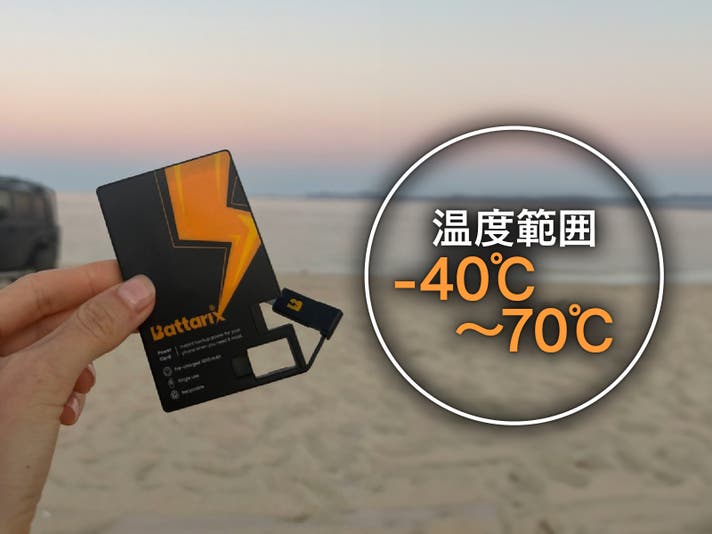 また-40℃〜70℃の温度範囲で対応できるので、冬の雪山、灼熱の車内などでも使用可能。