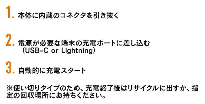 A. スマホの充電が切れそうなときにすぐ使える「使い切りタイプの緊急電池」です。