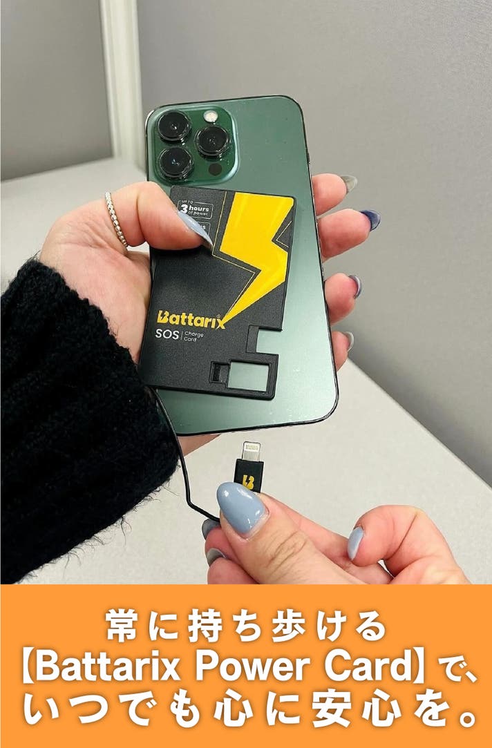 ※Battarix Power Cardはリチウムマンガン電池です。充電中に通話やアプリを使用すると電力を消耗するため、実際に充電できる量が少なくなリます。