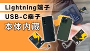 ケーブル付きのUSB-CとLightningのコネクタが内蔵されているので、iPhoneとAndroid両対応。