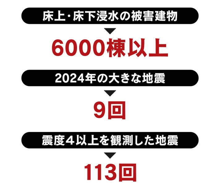 ※気象庁 令和6年日本の地震活動、国土交通省 水害レポート2024調べ