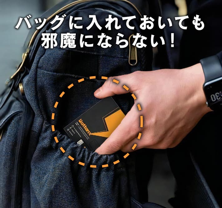 毎日必ず持ち歩くアイテムに入れておけるので、突然訪れる緊急災害時にもスマホの充電を確保できます。
