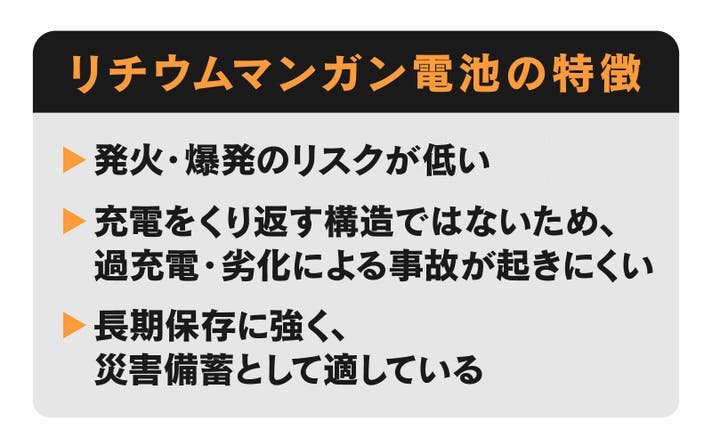 発火や爆発のリスクが低い、リチウムマンガン電池を採用しているので、気になる安全性も確保。