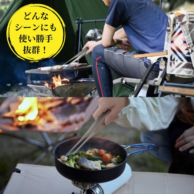 - 錆びにくいステンレス製のトング で、キャンプ や ソロキャンプ でも活躍します♪
