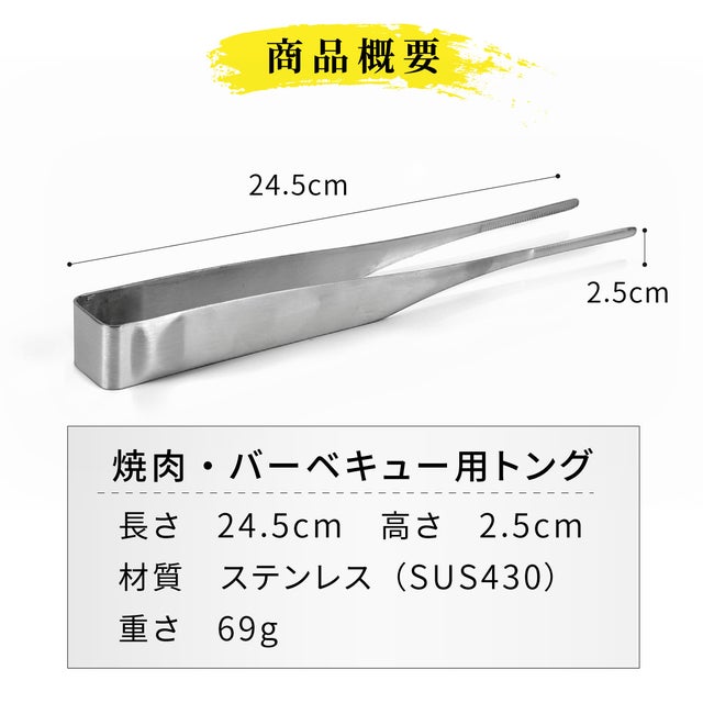 - シンプルなオリジナルデザインのトングです。先端に溝が付いているので、お肉がつかみやすいです。