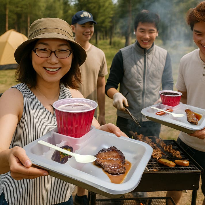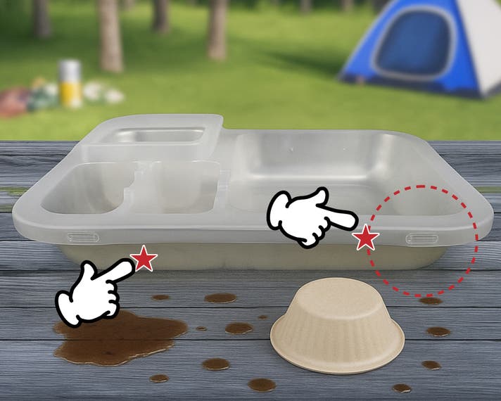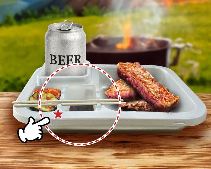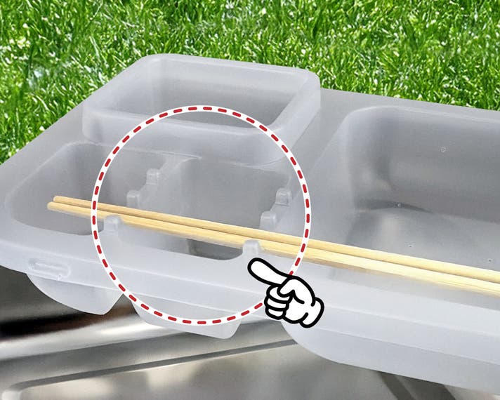 本製品のPPトレー(内容器)には、突起構造を配置。お箸やスプーン、フォークを気軽に置いても転がり落ちません。BBQで起こりがちな「あれ?私のお箸はどこ行った?」はもう過去の話になりました。