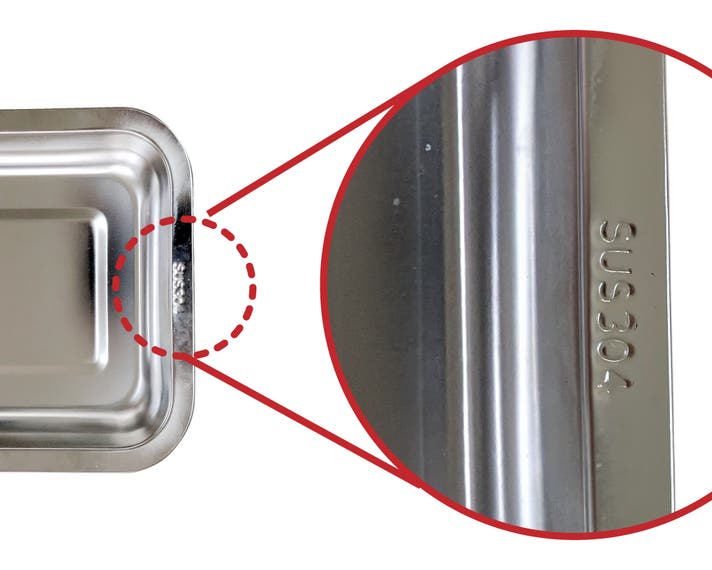 Bトレーでは、外容器に信頼性の高いステンレス素材(SUS304)を採用。食器や厨房、医療器具など、衛生管理が必須の場面で広く使われている素材です。