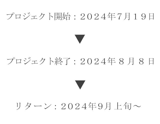 このプロジェクトはAll in型です。目標金額の達成に関わらず、プロジェクト終了日の2024年08月08日までに支払いを完了した時点で購入が成立します。