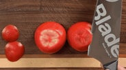 食材を抑えることなく、包丁を当てるだけ。